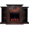 Create a cozy and classic environment in your living room layout or restful retreat with this electric fireplace, featuring an insert with adjustable flickering flames that can heat up to 400 square feet. Polyresin stone surrounds the center for a tastefully textured look, while a molded mantel, base, and sides made from manufactured wood round out the design with a traditional touch. As safe as it is stylish, this piece is protected by glass that remains cool to the touch.
